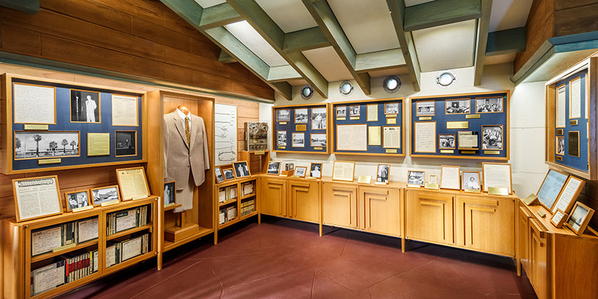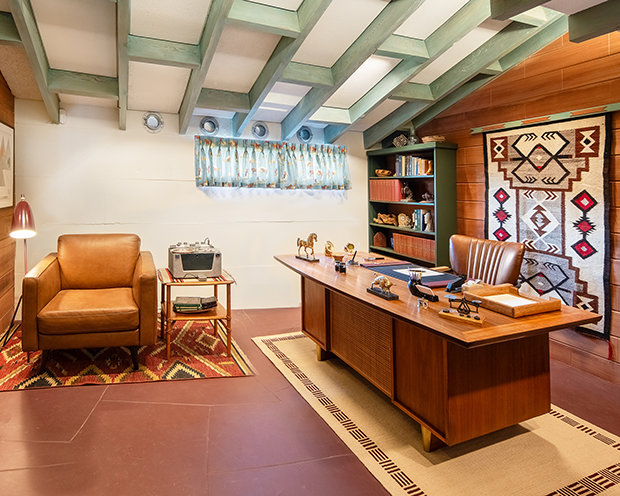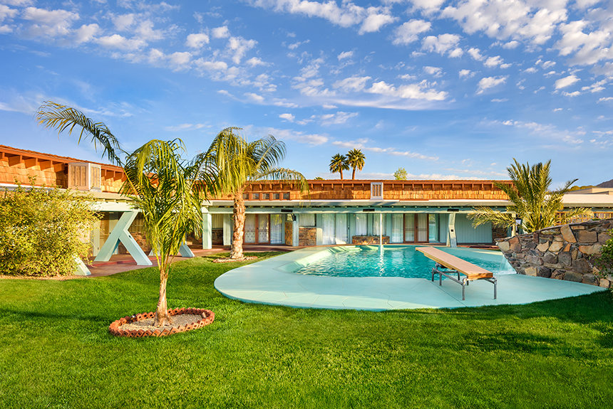 His Osborn Road property, a striking example of Prairie-style architecture, had been built in 1948, set amidst what was then a vast citrus orchard, covering an area that has since developed into suburban Phoenix. In fact, when Mr. Hubbard first arrived in 1954, the site still featured neat rows of some forty navel orange trees from that original orchard.